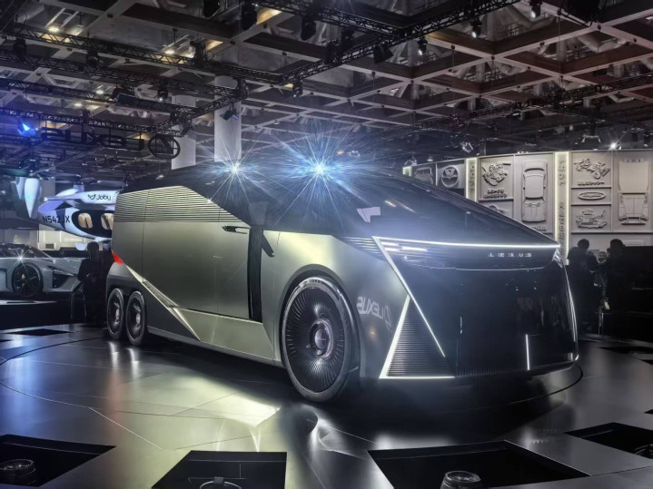 雷克萨斯发布的产品则体现了这一理念。观察者网在现场注意到,雷克萨斯展示了“LS概念车”,该车虽然为商务车的车身形态,但却采用了6个车轮的结构,前面2个车轮较大,后面4个车轮较小。